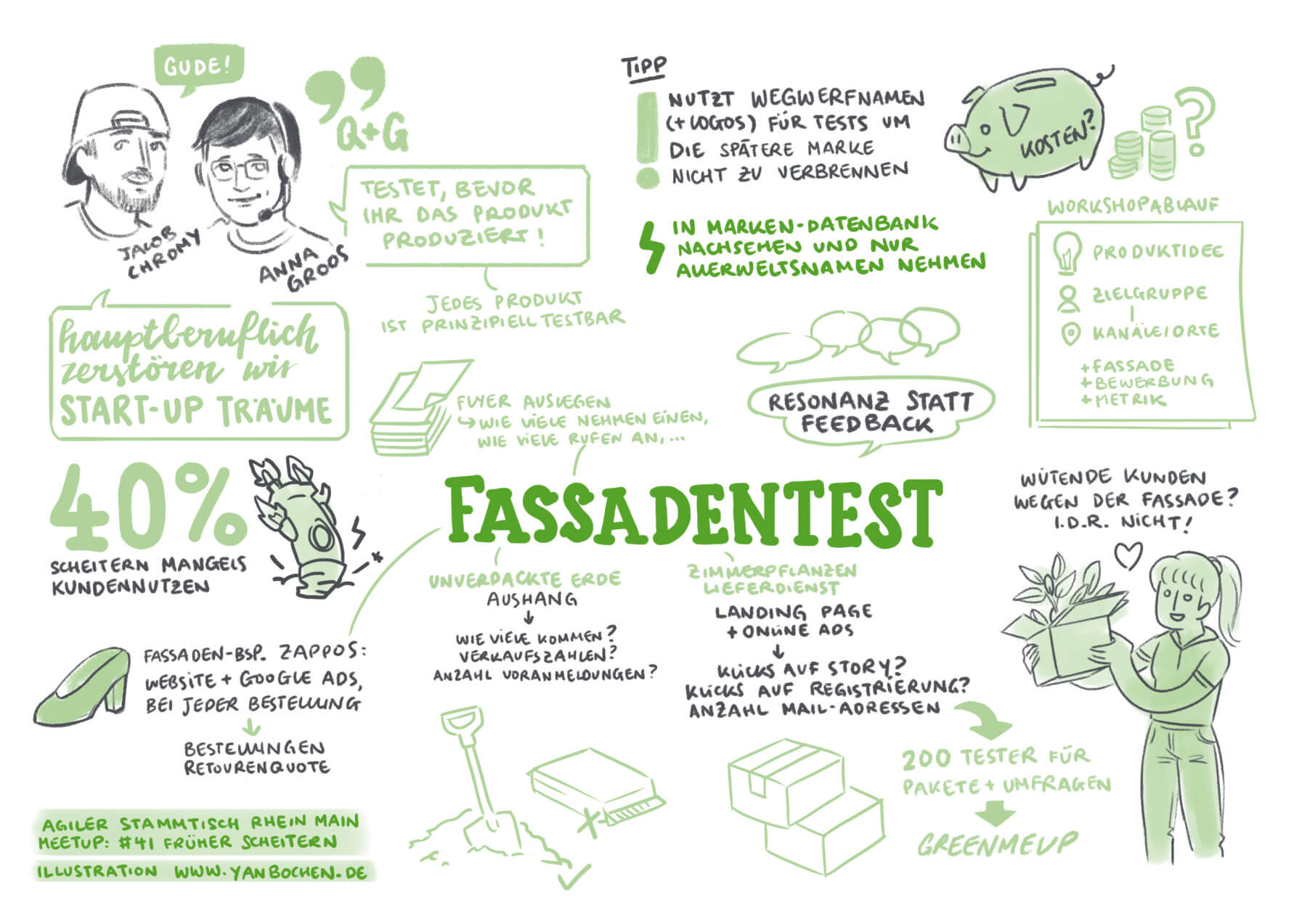 Früher in Mainz – jetzt in Zoom. Beim agilen Stammtisch Rhein-Main bauten wir Fassaden auf und Berührungsängste mit frühem Produkt-Testing ab.