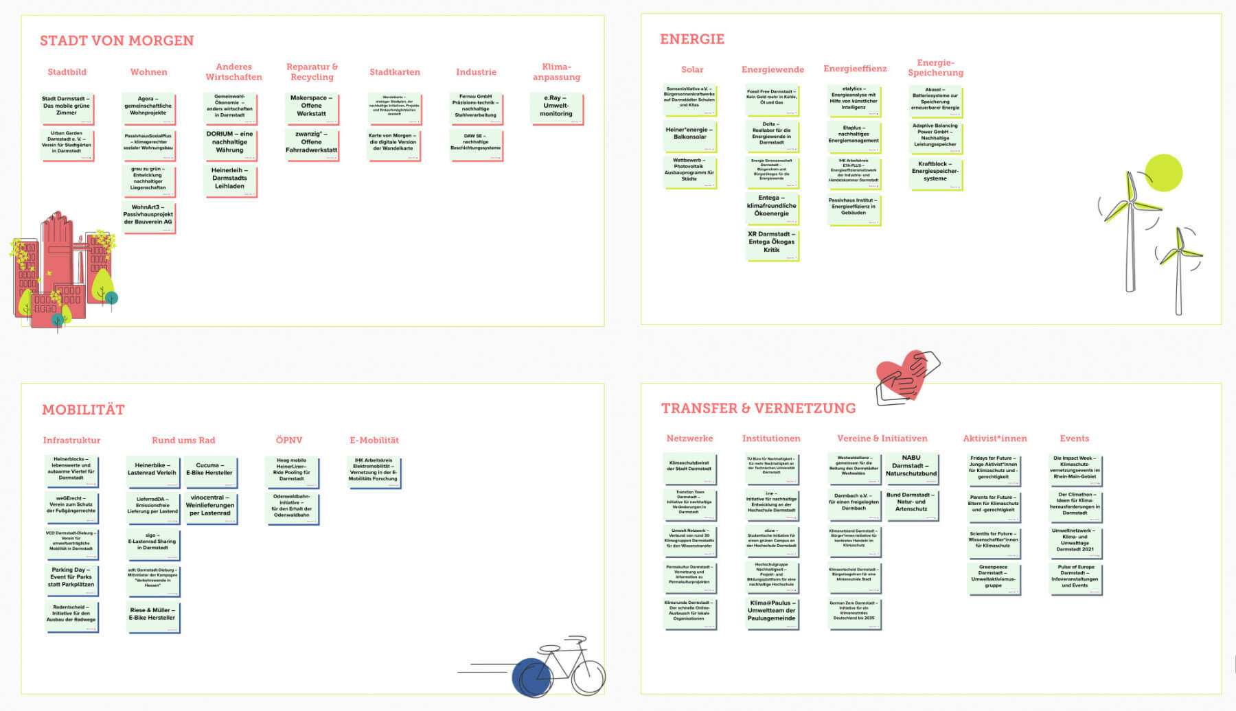 Um diese geballte Klimaschutzpower zu verkünden, haben wir eine immer wachsende Sammlung erstellt, in der wir all die Menschen, Organisationen, Projekte und Unternehmen festhalten, die sich für eine lebenswerte Zukunft Darmstadts einsetzen.