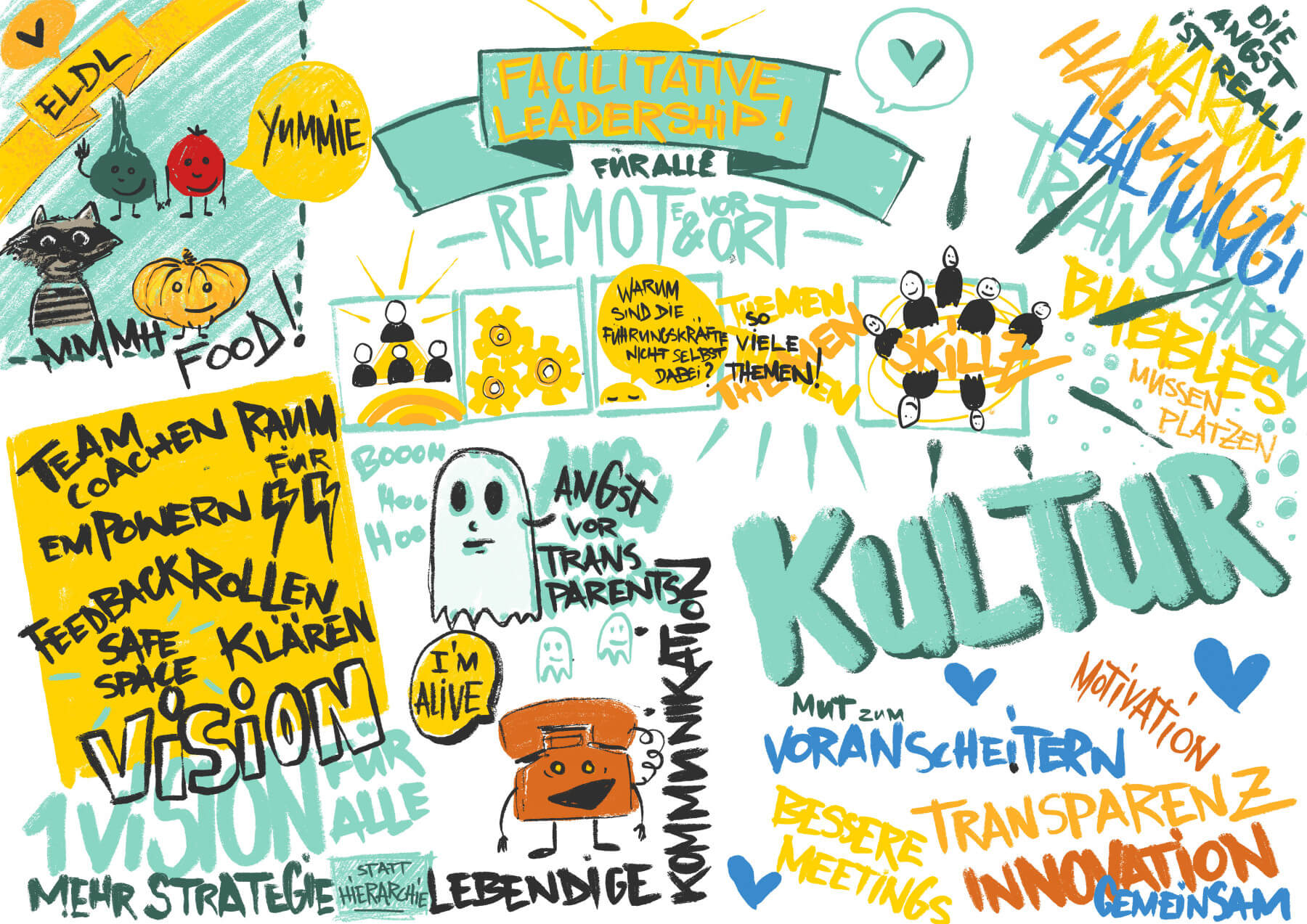 In der neunten Ausgabe unseres Mittagsformats haben Sophie und Jacob über „Facilitative Leadership“ gesprochen und ihre Beobachtungen dazu geteilt, warum sie denken, dass Facilitation Skills gerade für Führungskräfte so wichtig sind. Wir glauben, dass es für eine komplexere Arbeitswelt auch eine neue Art von Führung braucht. Nach dem gemeinsamen Schlemmen und Zuhören, haben wir unsere Gedanken zum Thema in verschiedenen Runden ausgetauscht.