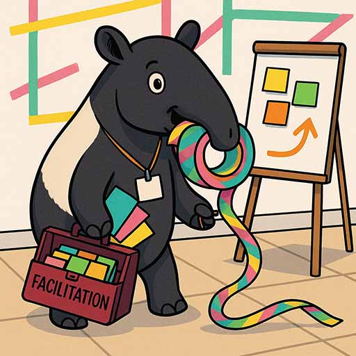 KI verbraucht nicht nur viel Energie. Sie kann auch welche geben: Damit wir uns regelmäßig mit KI-Tools auseinandersetzen, haben wir uns eine temporäre Regel gegeben: Wer den Schontag moderiert, muss ein KI-Element integrieren. Wechselnde Moderationen = wechselnde Experimente. Gern genommen ist dabei der Energizer-Slot um 10 Uhr 23 (wir lieben krumme Uhrzeiten). Für einige Lacher gesorgt hat der: Facili-Tapir. Er war das Ergebnis unseres selbst erdachten Energizers „Tierische Firmentiere erfinden“. Und der geht so: