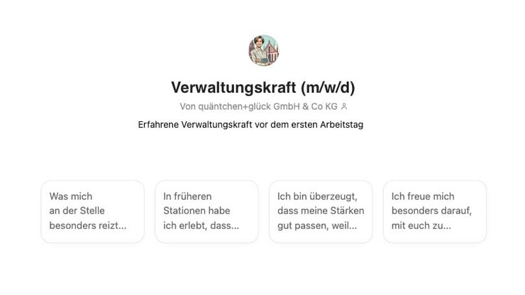 Neue Kolleg*innen einbeziehen, die noch gar nicht eingestellt sind – das hat mit KI richtig gut geklappt. Für einen Teamtag entwickelten wir Custom GPTs auf Basis echter Stellenausschreibungen. Die Avatare beantworteten Fragen wie „Was brauchst du zum Ankommen?“ oder „Was ist dir bei Teamarbeit wichtig?“ und gaben der Zukunft einen Platz am Tisch. Plötzlich gab es Stimmen, die sonst gefehlt hätten. Die Neuen waren nicht nur mitgemeint, sie waren anwesend.