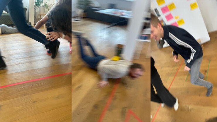 Vor ein paar Wochen haben wir uns zum Onsite in Darmstadt getroffen. Weil wir uns als ganzes Team meist remote sehen und nur in wechselnden Workshop-Tandems in Präsenz, gibt es feste Termine im Jahr, an denen wir uns alle gemeinsam vor Ort treffen. Dabei hat sich etabliert: Zu Beginn gönnen wir uns komplett freie Zeit. Kein Plan, keine Methode, kein Ziel. Einfach nur wir. Zum Ankommen – aber auch zum Nachholen. Denn als Remote-Team haben wir kaum Zeit, in der einfach mal nichts passiert.